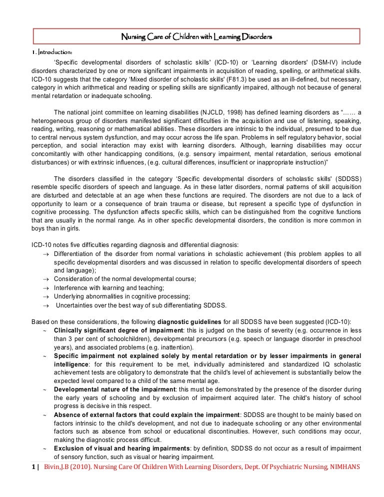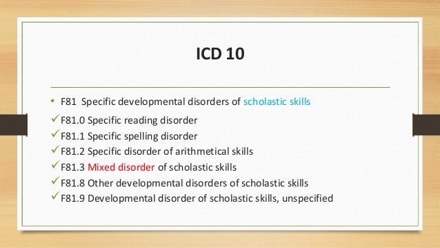 Specific Learning Disorder With Impairment In Reading Icd 10