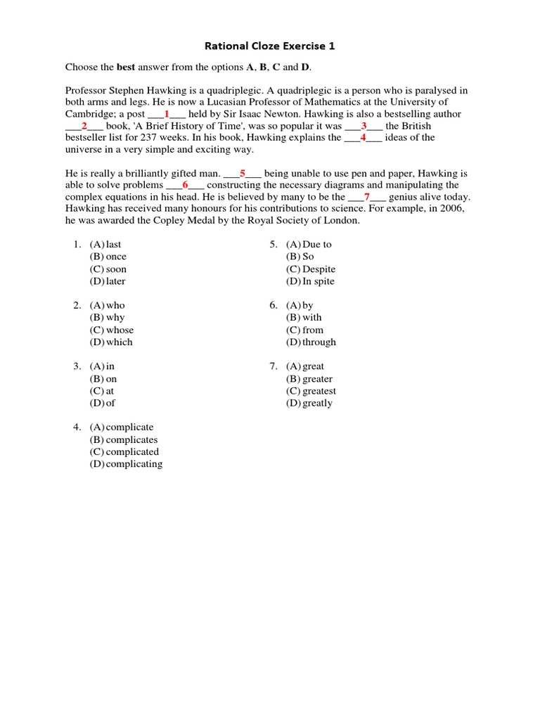 Rational Cloze Exercise 1 Chicken Stephen Hawking